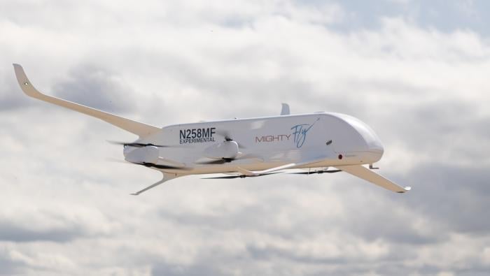 MightyFly is testing its 100-pound-payload Cento eVTOL freighter using an FAA-approved flight corridor in California. Since March, the start-up has conducted over 30 autonomous flights, and with partners is now starting missions carrying medical and pharmaceutical supplies, spare parts, manufacturing components, and consumer goods to demonstrate the aircraft’s suitability as a business-to-business logistics platform. |