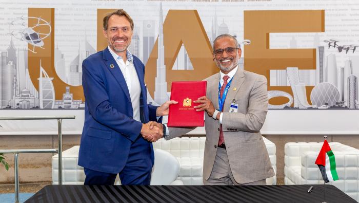 Joby Aviation has issued the UAE General Civil Aviation Authority (GCAA) a letter of intent to apply for an air operator certificate, marking its first step toward becoming a certified commercial air taxi operator in the Middle East. Company founder and CEO JoeBen Bevirt presented the letter of intent to GCAA director general Saif Mohammed Al Suwaidi this week during the ICAO Advanced Air Mobility Summit in Montreal, Canada. |