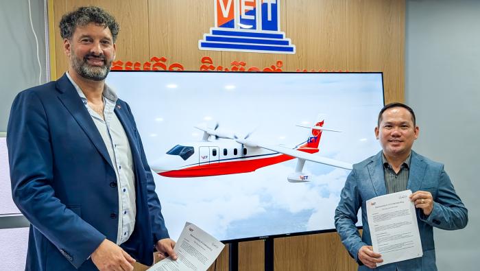 Vet Airways, a new Cambodian start-up, plans to connect Southeast Asian coastal communities using Elfly’s electric Noemi aircraft. On July 9, the spinoff from transportation group Vireak Buntham Express signed a memorandum of understanding with the Norwegian manufacturer covering the purchase of five aircraft in a deal potentially valued at $50 million. |